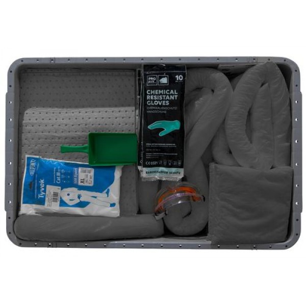 | Oprema | 100 podlog 50 x 40 cm 20 kač 120 x 7,5 cm 15 blazin 25 x 25 cm 1 vreča granuliranega olja in kemičnega veziva* 1 očala za poln vid z elastičnim trakom* 1 zaščitna obleka* 3 pari zaščitnih rokavic 1 zajemalka granulata* 5 vrečk za odlaganje *ni vključeno v kompletu za ponovno polnjenje, naročite posebej |