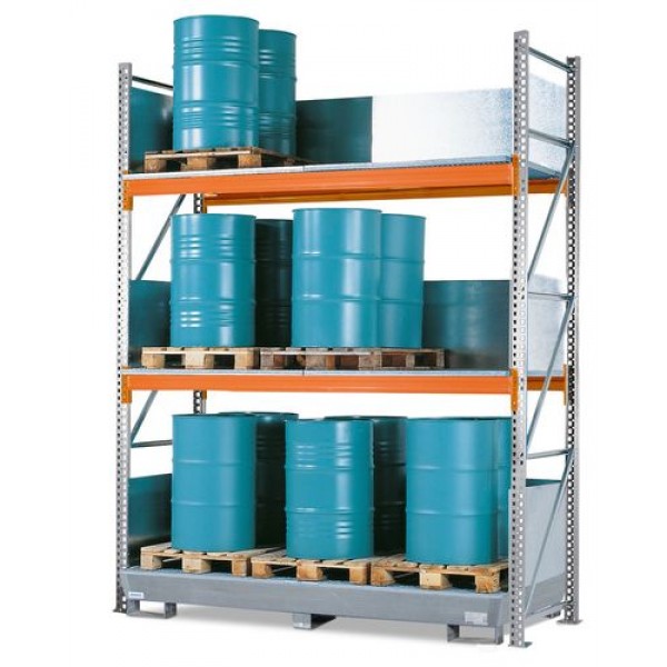 Combi-Shelf 4 S24-I s pocinkano lovilno posodo, za 24 vertikalnih 200 l sodov, osnovni regal
