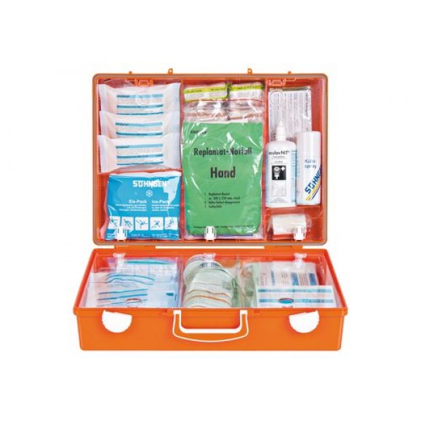 - komplet z osnovno vsebino v skladu z DIN 13157, plus individualna razširitev vsebine v zvezi s poklicnim tveganjem.