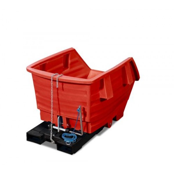 Prekucni zabojnik iz poletilena (PE) z žepi za vilice, prostornina 500 litrov, rdeč