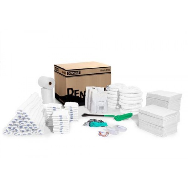 | Oprema | 2 roli vpojnega flisa, 45 m x 38 cm, 400 podlog, 50 x 40 cm , 40 kač 120 x 7,5 cm 16 kač 300 x 7,5 cm 30 blazin 25 x 25 cm 3 vreče granulatov po 8 kg 3 očala z elastičnim trakom 3 pari zaščitnih rokavic 75 vrečk za odpadke |