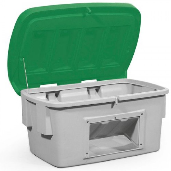 Posoda za pesek SB 200-O iz polietilena, 200 l, odprtina za odjem, zelen pokrov