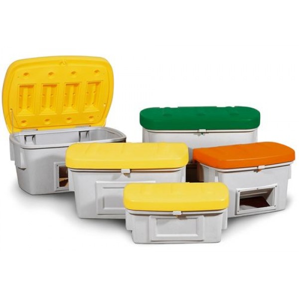 - čvrsta in na vremenske vplive odporna posoda za pesek iz polietilena (PE),