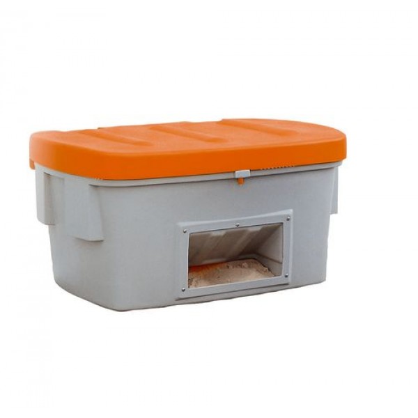 Posoda za pesek SB 550-O iz polietilena, 550 l, odprtina za odjem, oranžen pokrov