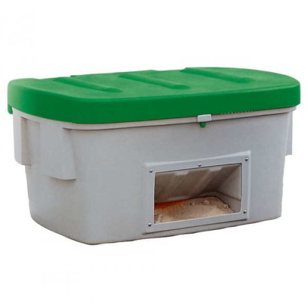Posoda za pesek SB 550-O iz polietilena, 550 l, odprtina za odjem, zelen pokrov