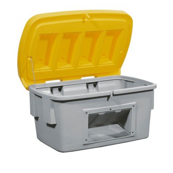 Posoda za pesek SB 700-O iz polietilena, 700 l, odprtina za odjem, rumen pokrov
