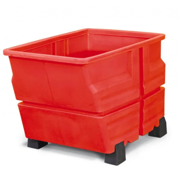 Kontejner iz polietilena (PE), z nogicami, 600 litrov, rdeč