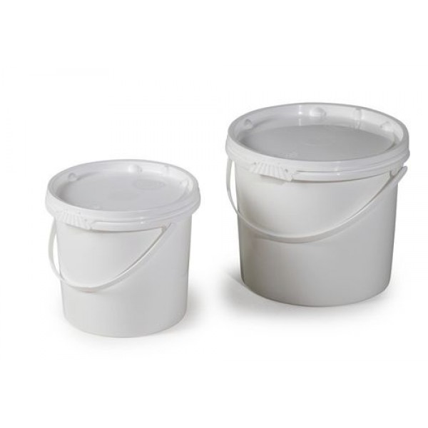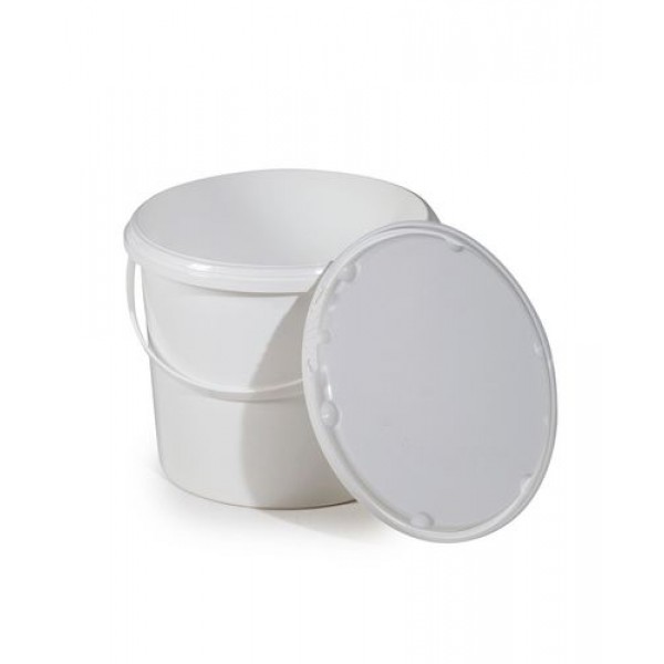 UN vedro iz PP, 5,5 L, belo s pokrovom in plastičnim ročajem, PU = 10 kosov