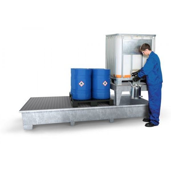 Lovilna posoda classic-line za 3 IBC, pocinkana, 1 stojalo, 2 rešetki